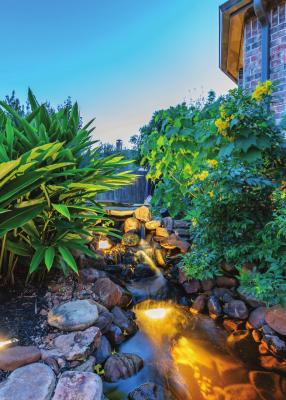 “When they’re in their outside spaces, they want that atmosphere,” Kuehler says. He suggests dimmers to help provide additional layers of control as the client needs them. “If they’re so bright that when you turn it on it just lights up everything in the backyard, it’s kind of killing that whole atmosphere and elegance that you were going for.”