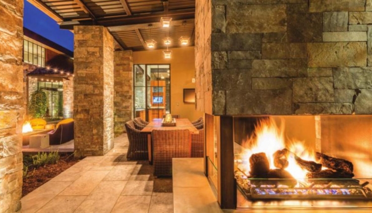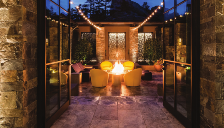The client wanted a year-round outdoor oasis that was also suitable for entertaining large parties. Designs by Sundown, with Vertical Arts Architecture, installed step lights, making it easy for the homeowners and their guests to navigate the property and safely find their way to the outdoor spa in the courtyard. Bistro lights in the main fire pit area add a fun and festive flair. All the outdoor lighting is managed through an app, which allows the owner to change the color and intensity of the lights and turn zones off and on.